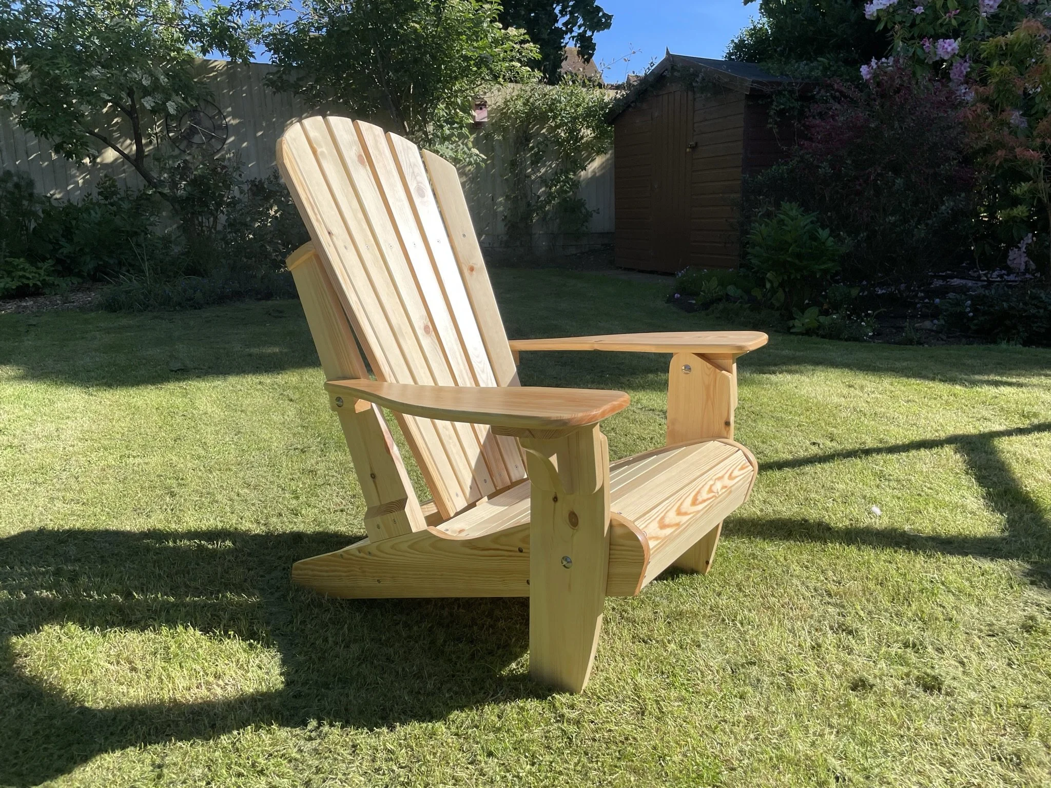 Garden chairs made from plans, designed to fold away for storage during the wetter months—a classic woodworking staple.
