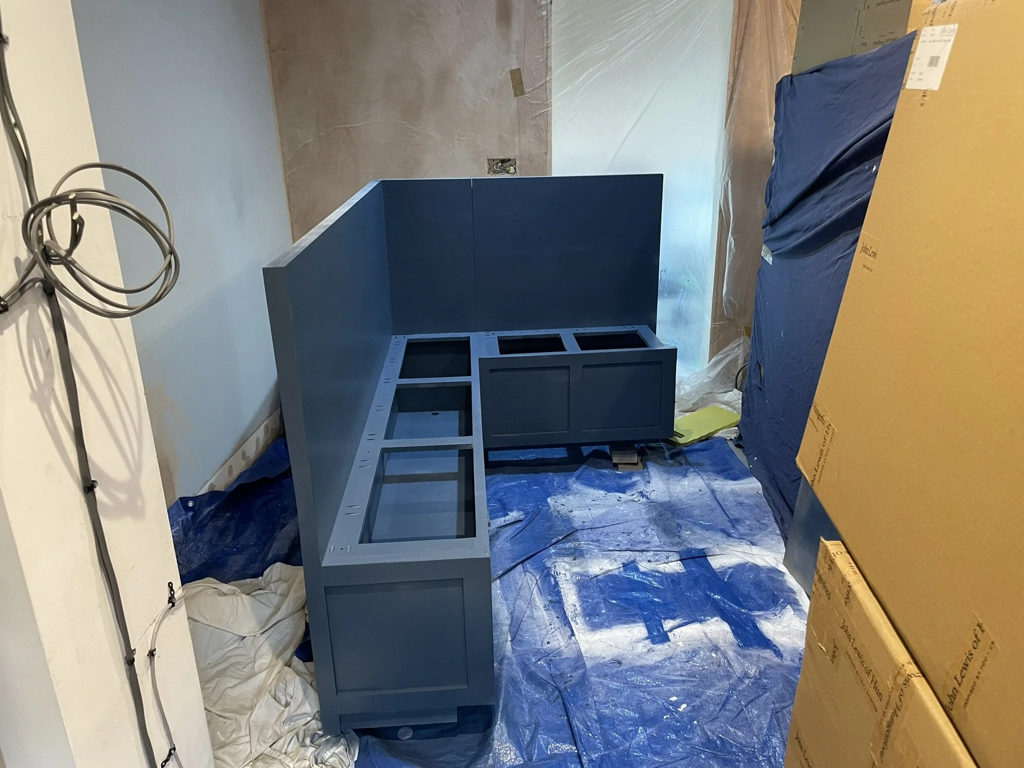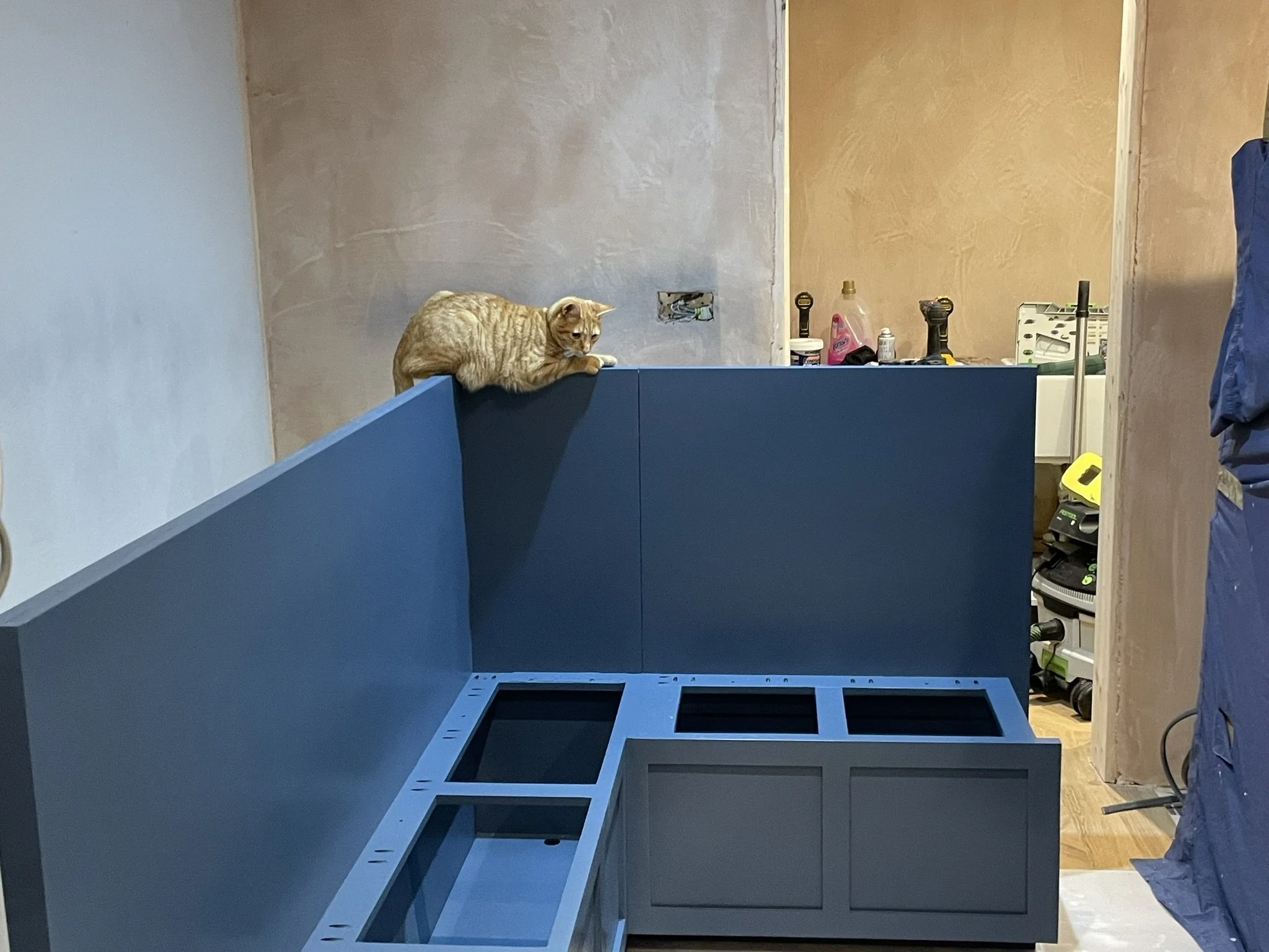 For now, we have an old table in place, but eventually, it will be replaced with a new white oak table, completing the space as a multifunctional kitchen hub.