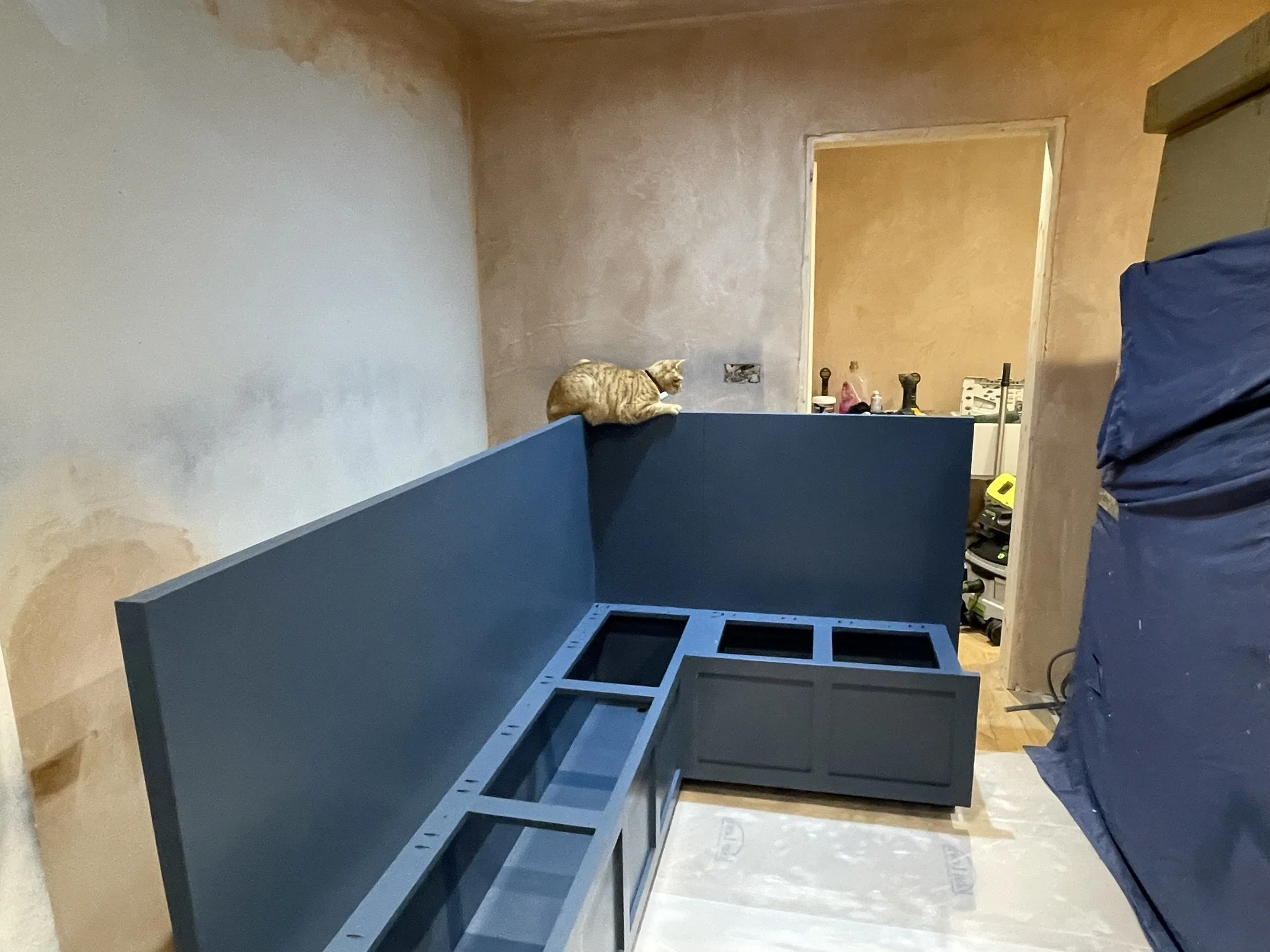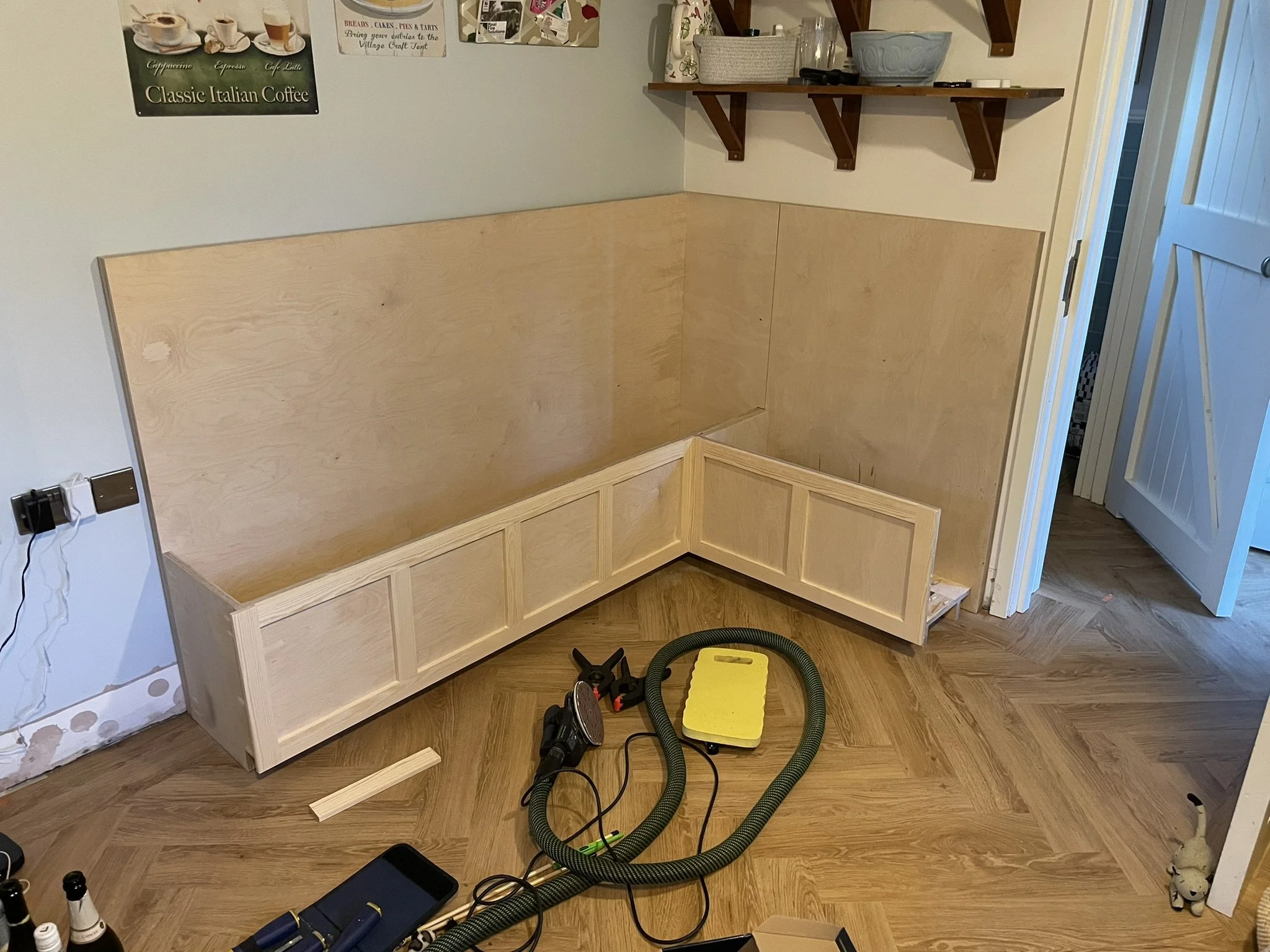 Our kitchen is a decent size, but we had nowhere to sit together comfortably. This part of the room previously had an island that butted up against the wall and wasn’t being used as intended — in fact, it had become a bit of a dumping ground.