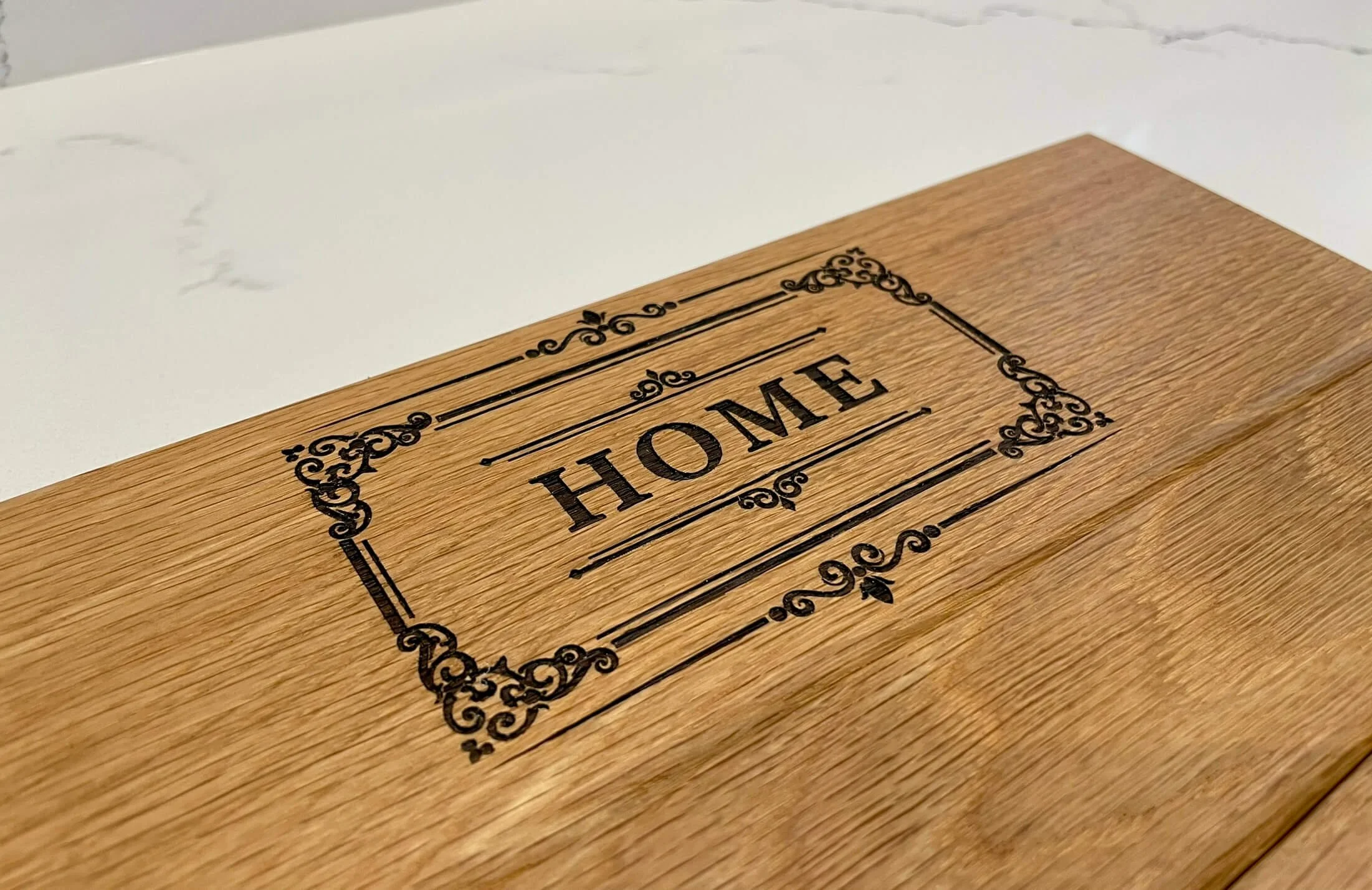 Classic Design: Features an elegant laser-engraved "HOME" label with decorative corner flourishes that complement any home décor